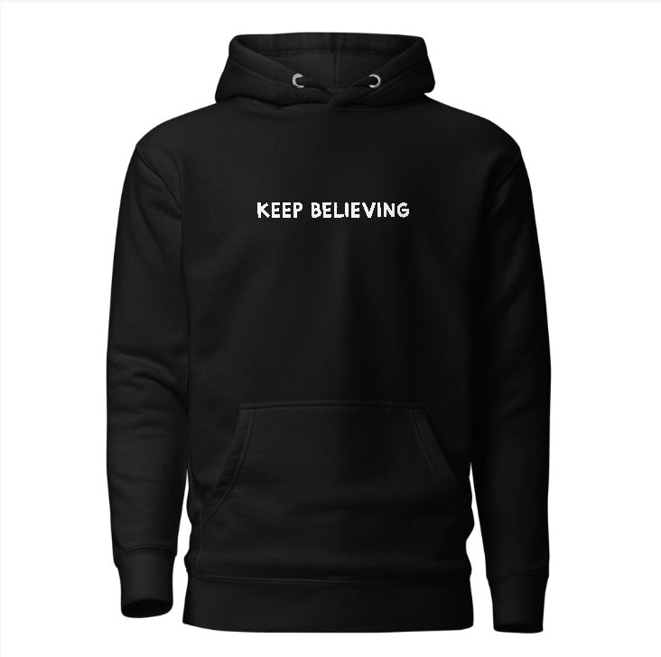 The “Keep Believing” hoodie by RawTalkClothing is a wearable reminder to trust your journey, even when no one else sees your vision.